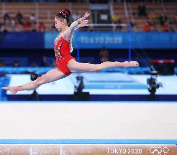 8月3日,在东京奥运会体操项目女子平衡木决赛中,中国选手管晨辰夺得冠军。记者 王建龙 摄