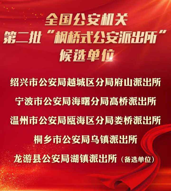 浙江在线-宁波频道10月12日讯(浙江在线记者 王健 共享联盟海曙站 蔡迪 通讯员 段晓鹏 葛思彤)日前,浙江省公安厅公布了我省4个全国公安机关第二批“枫桥式公安派出所”申报单位和1个备选单位名单。宁波海曙公安分局高桥派出所作为宁波市公安派出所唯一代表,成功入选全国公安机关第二批“枫桥式公安派出所”申报单位。
