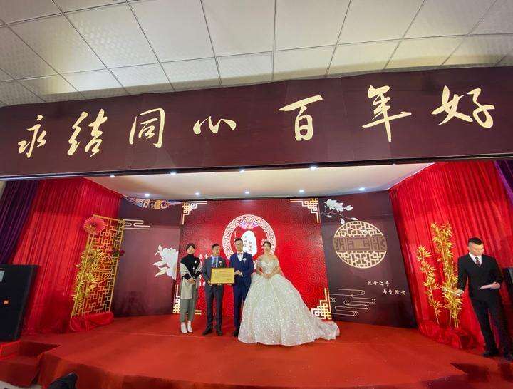 婚礼现场,新人收到当地慈善部门的捐赠证明。浙江新闻客户端记者 黄珍珍 摄