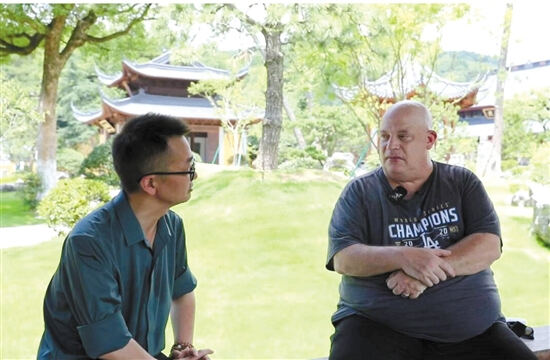 日本国际(日中)禅文化交流协会会长大谷哲夫热心于中日禅文化的友好交流,一个多月前,也来到了雪窦山,“我来过中国多次,亲眼见证了中国从上世纪七八十年代到现在的飞速发展。这次再次到访雪窦山,我对这里的变化印象深刻。”