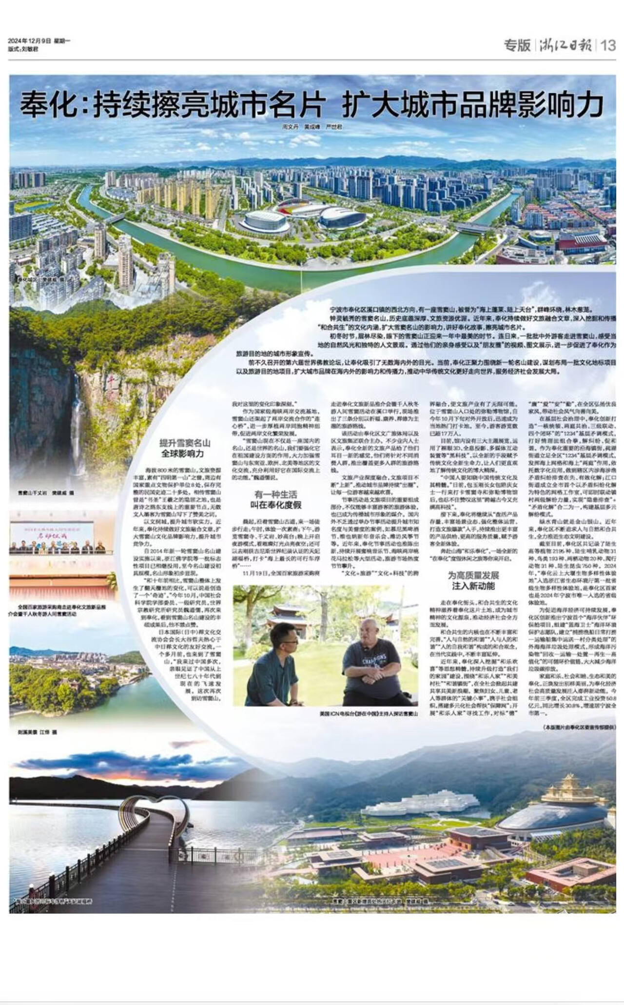 钟灵毓秀的雪窦名山,历史底蕴深厚、文旅资源优渥。近年来,奉化持续做好文旅融合文章,深入挖掘和传播“和合共生”的文化内涵,扩大雪窦名山的影响力,讲好奉化故事,擦亮城市名片。