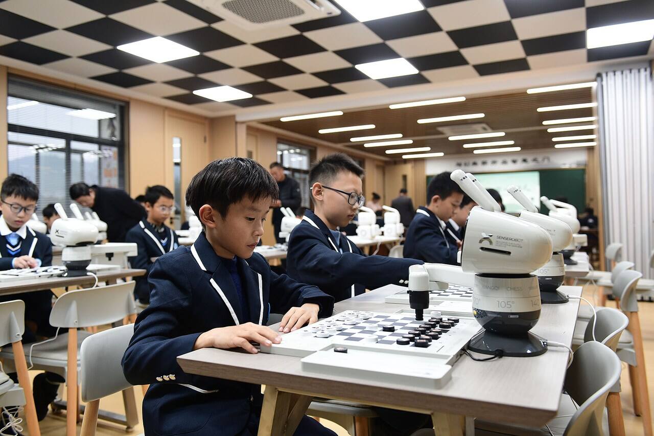 高约40厘米,通体白色,“有手有眼”“能听会说”……这两天,奉化居敬小学的孩子们多了个萌萌的新“棋友”。日前,宁波首个AI人工智能棋类教室在居敬小学落成。