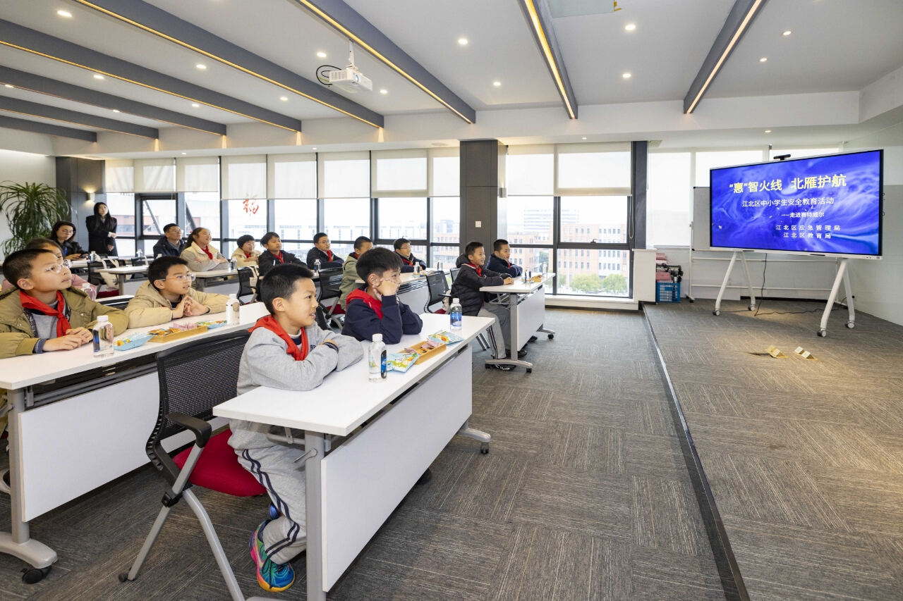 在赛特威尔实验室内,企业专业人员带领大家参观了各类实验器材,并详细讲解了其在消防安全检测和研究中的作用。此外,应急管理局工作人员还结合实际案例为学生们讲解火灾预防、火灾发生时的应对措施以及如何正确使用消防器材等关键知识。课堂上还设置了互动问答环节,学生们积极踊跃参与。