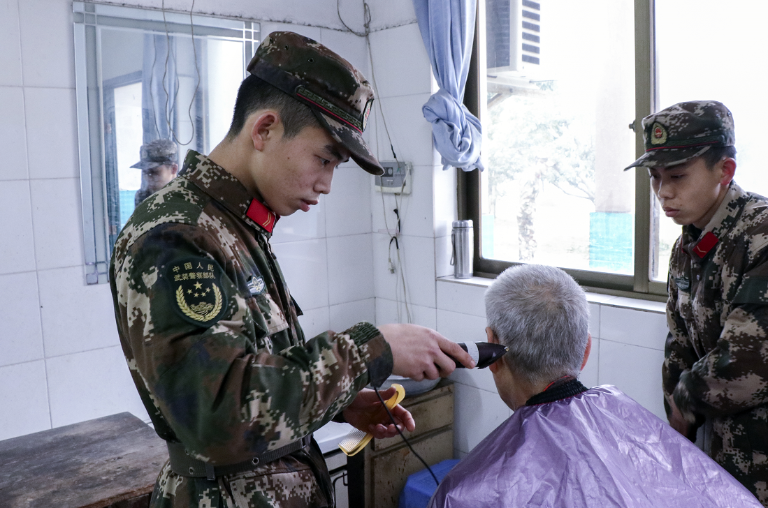 不远处,所有战士都挽起袖子忙活了起来,打扫卫生、修剪指甲、清洗衣物……让老人们实实在在感受到了温暖。