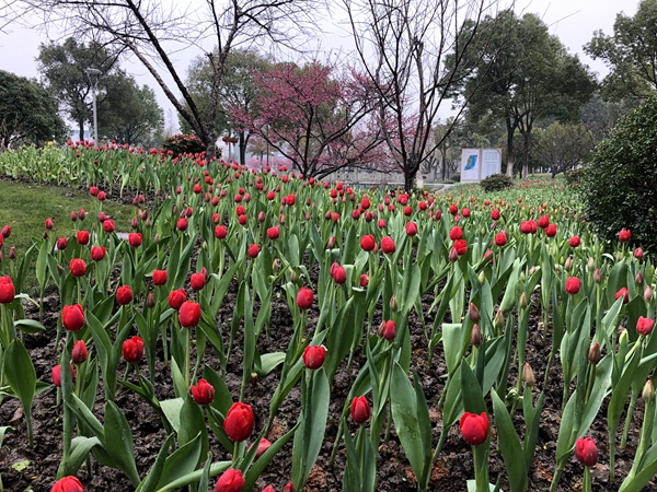 浙江在线-宁波频道3月6日讯(浙江在线记者 段琼蕾 通讯员 朱琼)3月6日,记者了解到,为了提升打造精品公园、营造更加优美的公园景观,宁波市城管园林部门在日湖公园“桃溪观鱼”外侧的叠水瀑布和“5号空间”对面的大草坪处种植郁金香球根花卉,共计面积约900平方米。展示的郁金香品种有红标、纯金、琳马克、紫旗、粉冠军、红色力量、法国之光、金检阅8个品种,3万余株。