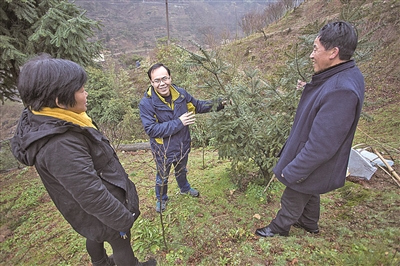 林业专家向四明山镇群众介绍利用香榧开展生态修复的好处。