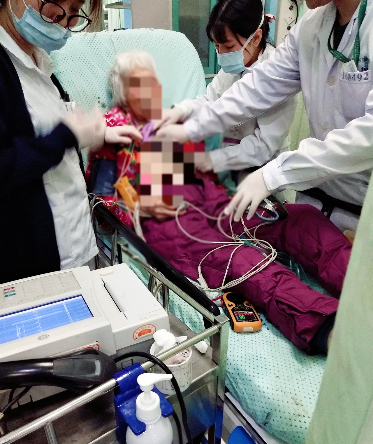 拍背、吸氧、输液、监测生命体征…….经过抢救室医护人员的全力救治,李奶奶终于脱离了生命危险。