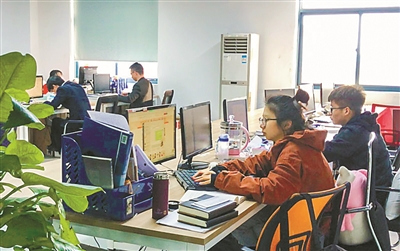 “赵记电器”的办公区域一片忙碌。(郑凯侠 何峰 摄)