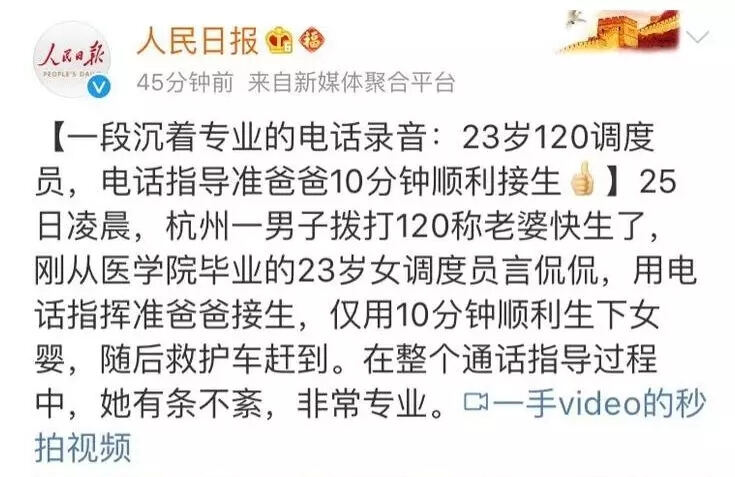浙江在线-宁波频道4月8日讯(浙江在线记者 竺佳 通讯员 高洋)在刚刚过去的假期里,刷爆宁波朋友圈的不是踏青,也不是美食,而是一位叫言侃侃的95后姑娘。4月4日,中央电视台新闻频道播出萧山区医疗急救指挥中心的院前急救指挥调度工作,因为电话指导成功接生而被中央媒体点名表扬的调度员言侃侃出镜。4月6日,央视网以《惊心十分钟!95后姑娘电话“远程接生”》为题,进行了报道。