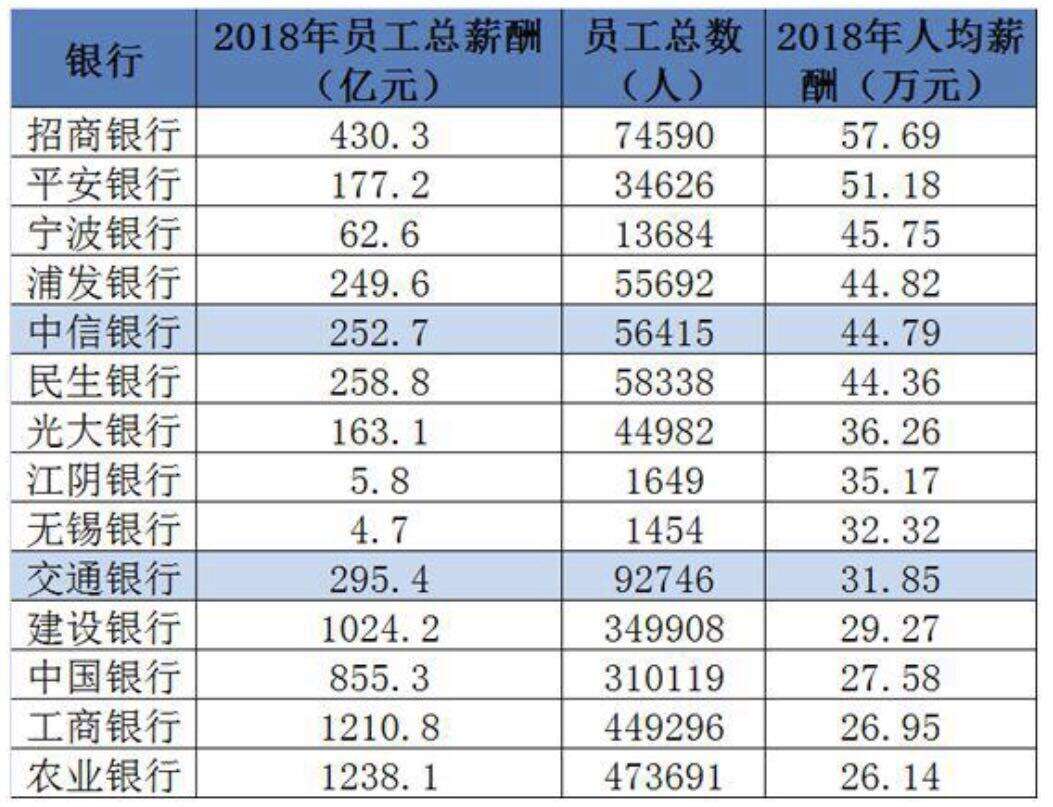 然而,真正惹来网友热议的是:去年宁波银行的人均年薪高达45.75万元,在当前已完成2018年报披露的近20家A股上市银行中,位居探花的位置。而排在前两位的招商银行、平安银行,其员工人均年薪分别达到了57.69万元、51.18万元。此外,人均年薪超过40万的还有浦发银行、中信银行。看到别人家的薪资水平,网友们都炸了,纷纷表示自己又被平均了。