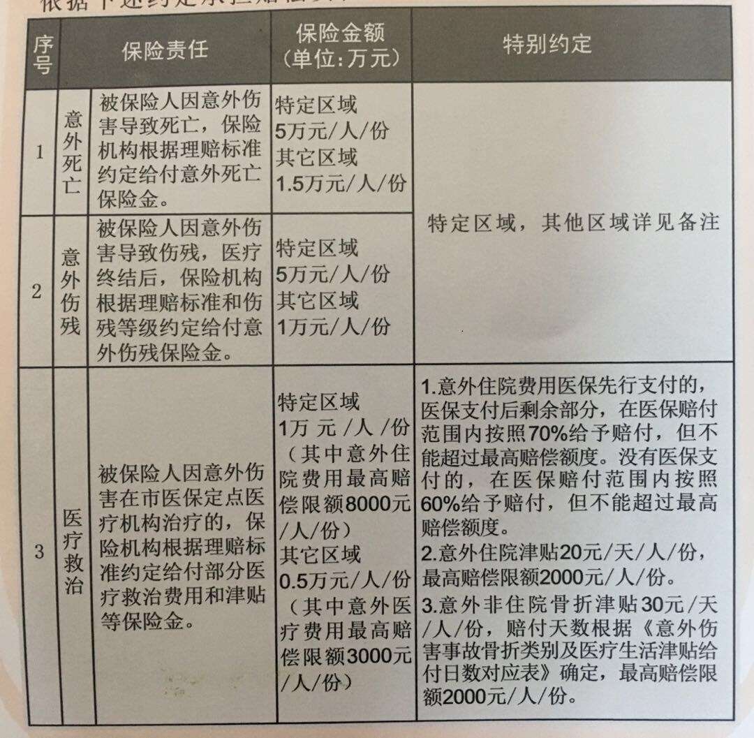 更为重要的是80周岁(含)以上的老年人及计划生育特殊家庭、最低生活保障家庭、最低生活保障边缘家庭中的老年人购买老年人意外伤害保险,各级财政按规定给予全额补助。