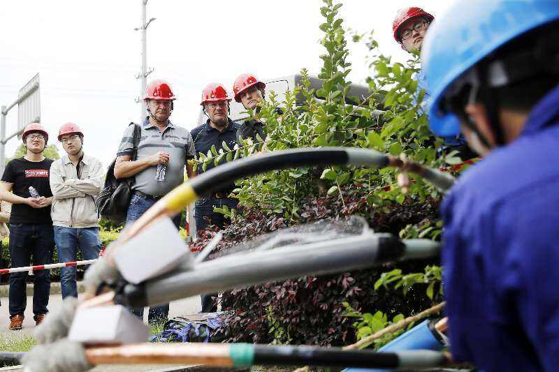 为使哈恩电气CEO及高层代表团一行对宁波中缆电力的新型交联电缆连接技术充分了解,中缆公司领导陪同澳洲友人来到宁波北仑区项目施工工地,现场观看MCYJMJ交联电缆连接技术施工过程。