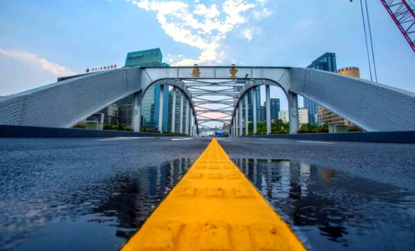 “灵桥自2016年7月重新开放交通后,桥梁运行至今,整体结构状况良好。”宁波市城管市政部门有关负责人告诉记者,“考虑到以前灵桥桥面沥青铺装常易损坏,大修时在兼顾灵桥的交通通行和文物保护的前提下,特地对钢桥面铺装进行了针对性的优化设计,在2007年较为成功的铺装工艺基础上进行了性能改进,同时还进一步优化减小了铺装厚度,以减轻灵桥铺装重量,为灵桥“减负”。”