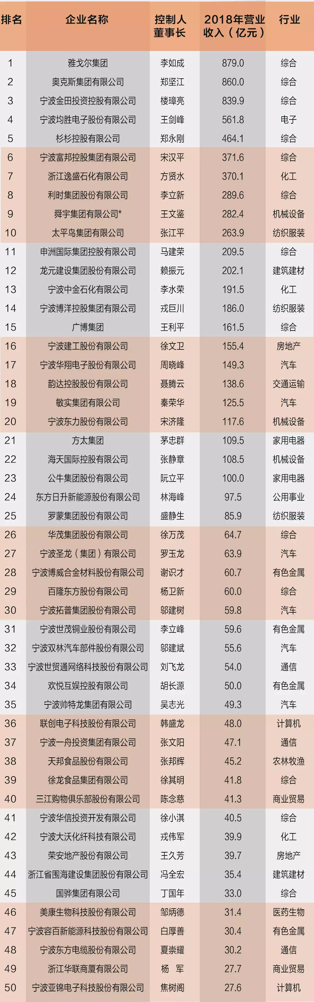 浙江在线-宁波频道6月4日讯(浙江在线记者 李华 贺元凯)在6月1日举行的 2019浙商(投融资)大会宁波峰会上,由《浙商》独家制作的“银泰大厦·2019浙商宁波百强”榜单首次发布。