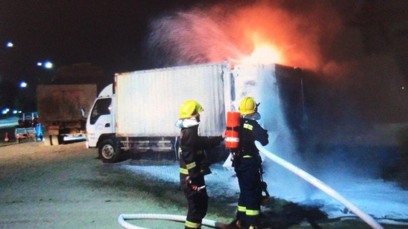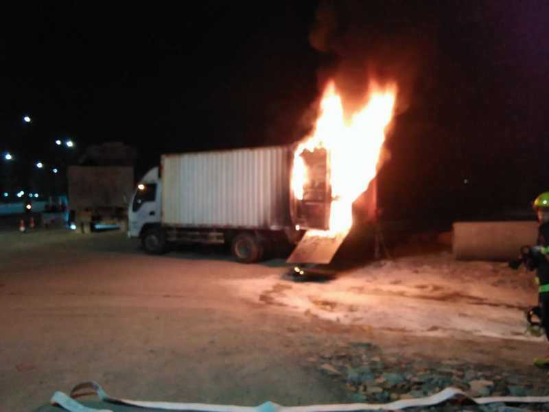 据了解,事发在6月12日晚上9点15分左右。当晚,象山119分指挥中心接到报警称:位于象山丹东街道蒋家村村口处一辆货车发生火灾,火点较多,有蔓延危险。
