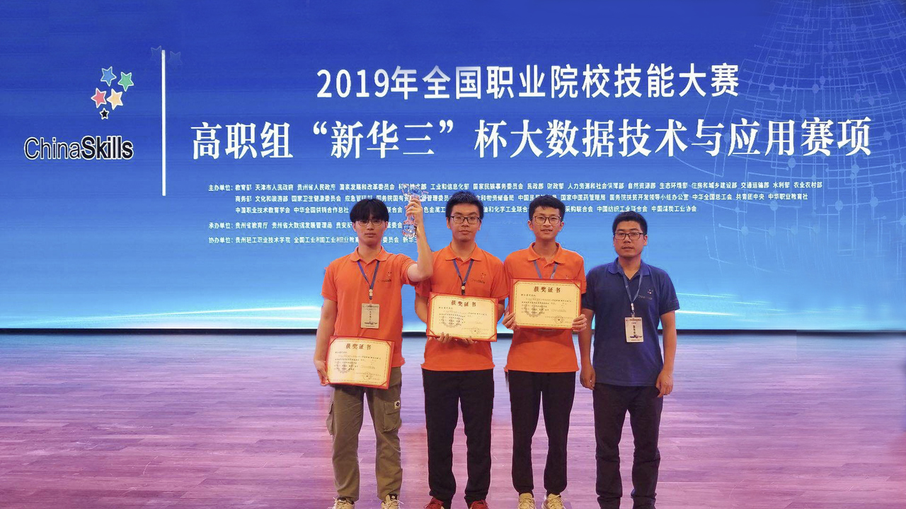 在刚刚结束的2019年全国职业院校技能大赛(高职组)“新华三”杯大数据技术与应用赛项中,宁波职业技术学院计应3171班何俊焱,计应3172班陈宇、裴旻,从参赛的 98支代表队中脱颖而出,位居全国第一,也是浙江省唯一获得一等奖的团队。