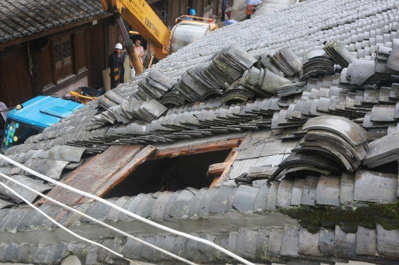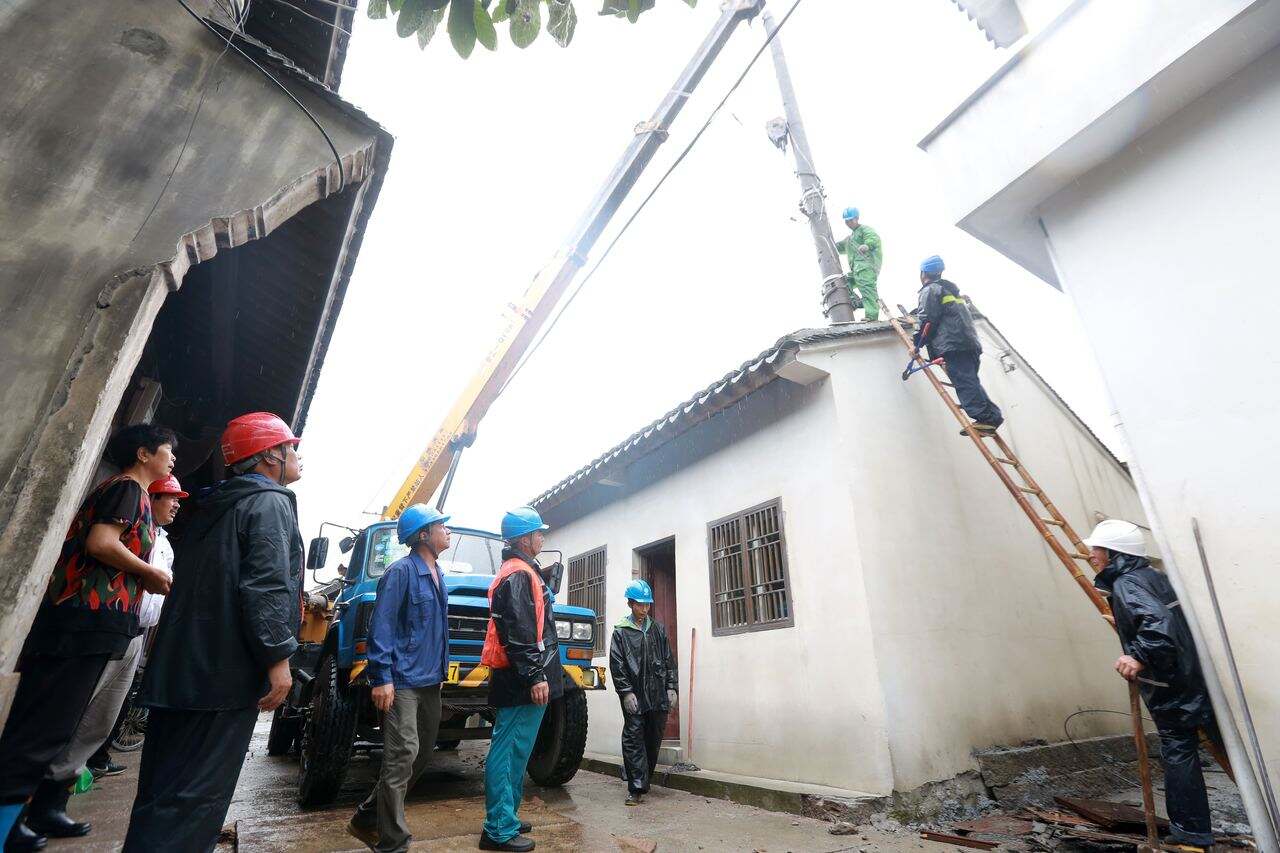 连日来,尽管梅雨连续不断地下着,但天童老街拨除拆除线路后的水泥杆最后的决战,电力工人冒着大雨,协助吊车把水泥杆一根根、一段段拨起“飞越”屋顶吊到马路边。直到下午4时许,最后一根水泥杆吊安全顺利吊出屋顶,他们全身已经是湿透了……
