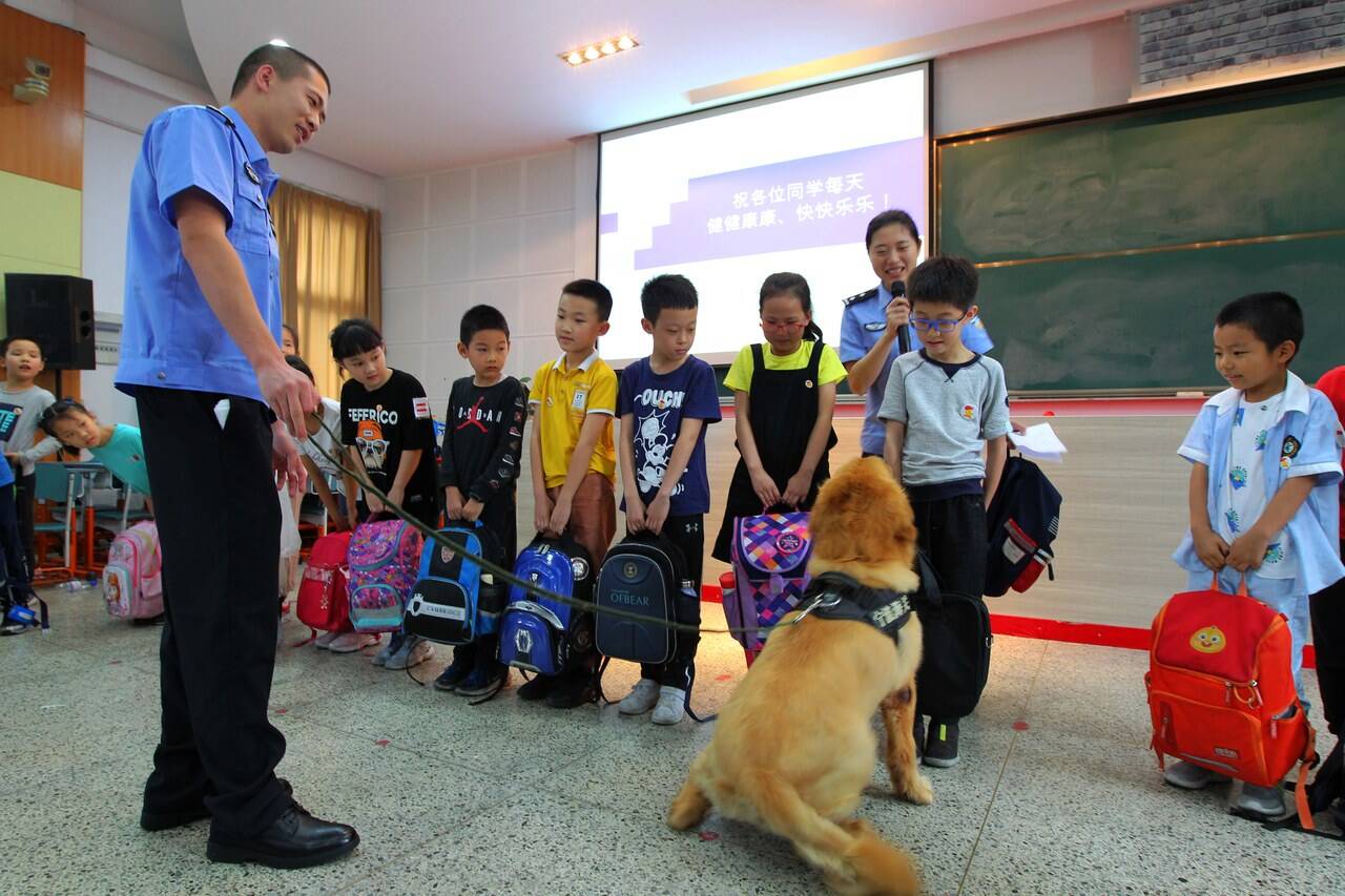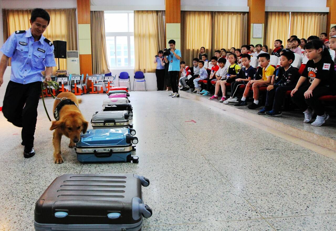 国际禁毒日来临前夕 两只身怀绝技的缉毒犬走进校园