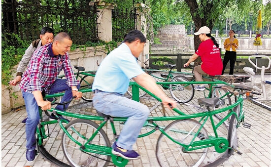 在万安社区,居民将废弃单车改造成“旋转木马”。