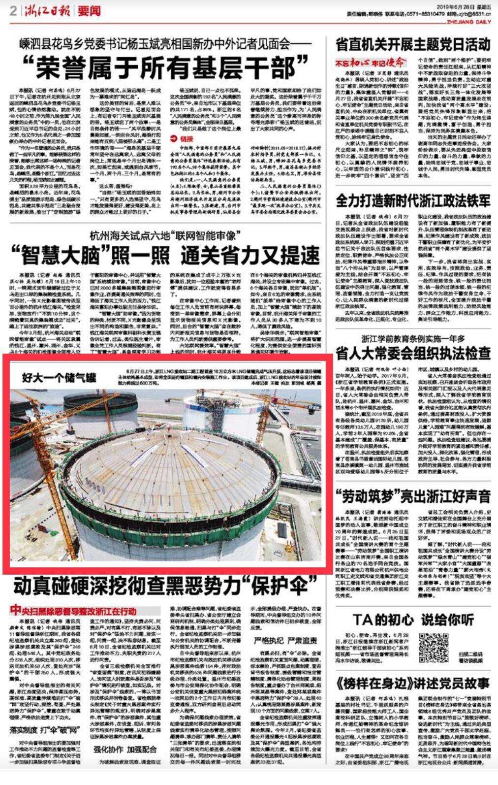 浙报关注丨为浙江“增”气 中国海油首座16万方LNG储罐在宁波结顶