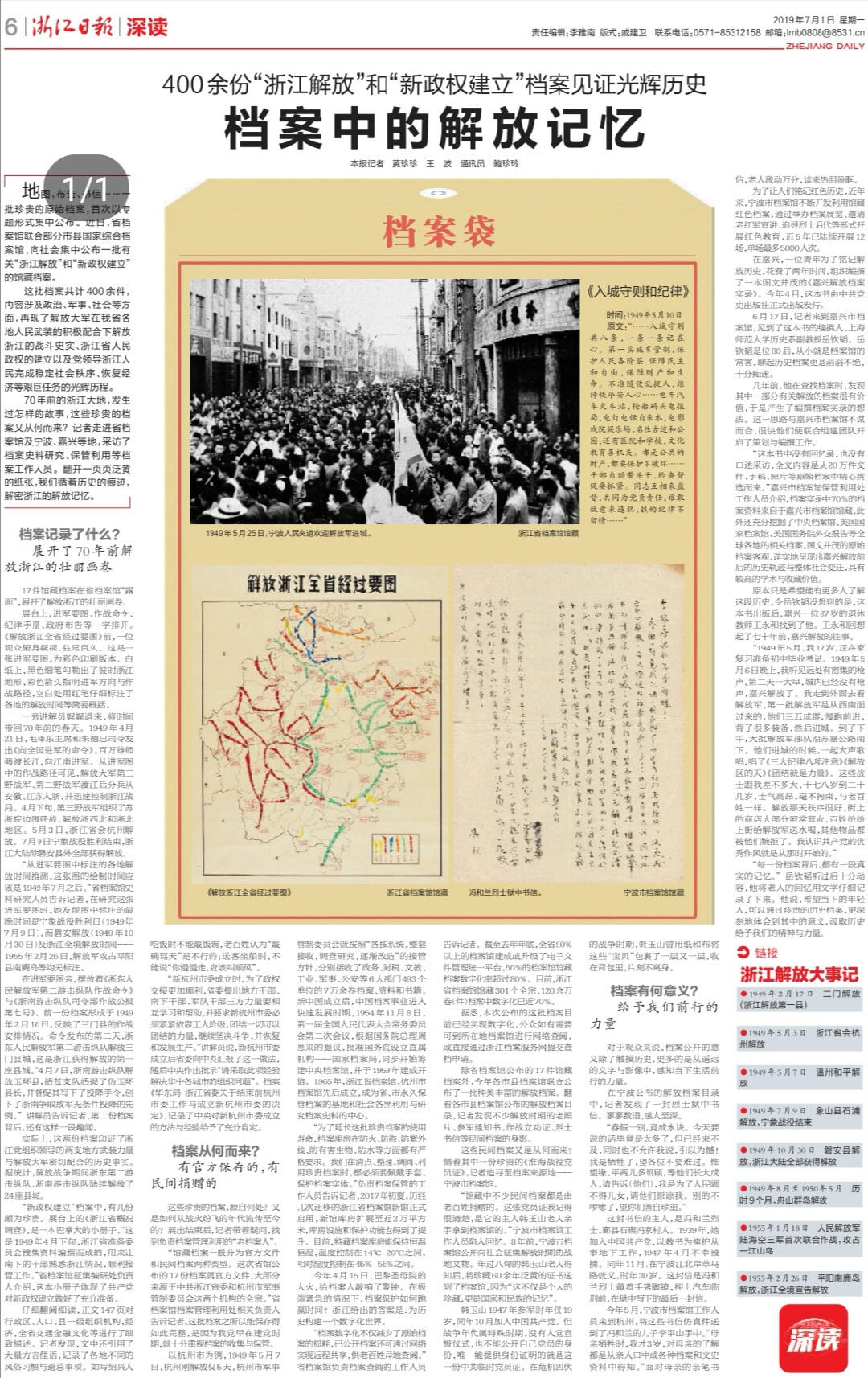 浙报关注丨400余份“浙江解放”和“新政权建立”档案见证光辉历史