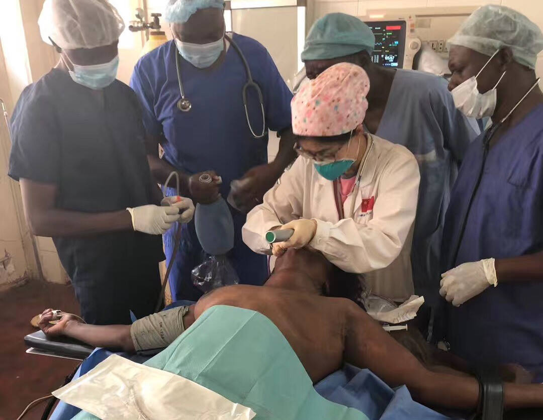 要把输血变成造血。工作之余,朱方方还通过传、帮、带把麻醉技术教授给中非麻醉医师。在班吉友谊医院只有一名麻醉医师,开展的技术也只有蛛网膜下腔麻醉,一旦遇到大型手术就很难应对。于是,朱方方手把手教他硬膜外麻醉方法。在她离开时,这名麻醉医师已经能独立开展这项手术了。