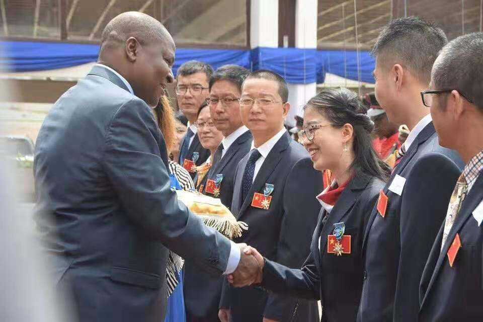 随着援助工作接近尾声,6月25日方方和同事们一起受邀至总统府,中非共和国总统亲自为他们授予勋章。