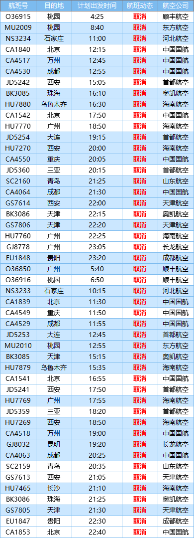 【9日9:40】宁波机场确定取消当日客机航班45架次