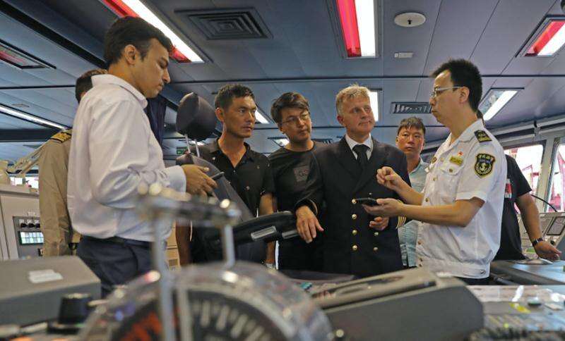 “渔民认为商船能够从海图判断渔船的状态,而商船船长则认为渔船应该通过号灯表示自己的状况。”周驰说。 为了让渔民了解商船如何工作,当天下午宁波海事局干部带着象山四名渔船船长登上了一艘20万吨级的曼彻斯特马士基商船。一上船,渔民对一切都十分好奇,立即走到驾驶舱感受商船船员的视线,而丹麦籍船长杰森则向渔民介绍了设备运作情况。
