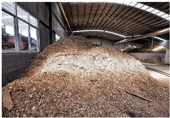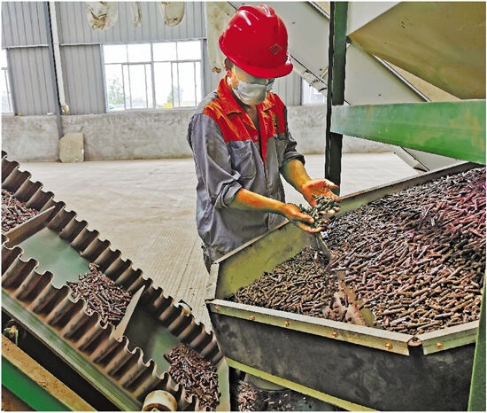 一旁的生产车间内只有两名工人在操作机器,通过破碎、粗粉、细粉、烘干、造粒、冷却等工艺流程,30分钟后,刚才的木质材料被制成了一颗颗灰黑色的生物质颗粒,这些颗粒看似不起眼,却是一种可代替煤炭的新型清洁能源,这应该就是我的“绿色归宿”吧。