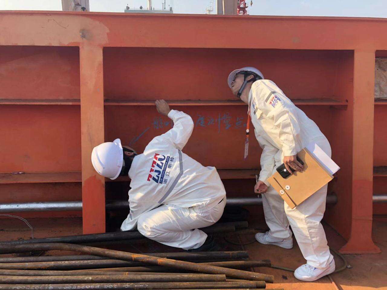 宁波这只验船师队伍,曾凭借高超的技艺、顶着烈日在60多度的船体上验船,被央视多个频道报道点赞过(本端也曾持续关注过)。与往年不同的是,今年渔业检验的验船师首次参与其中。