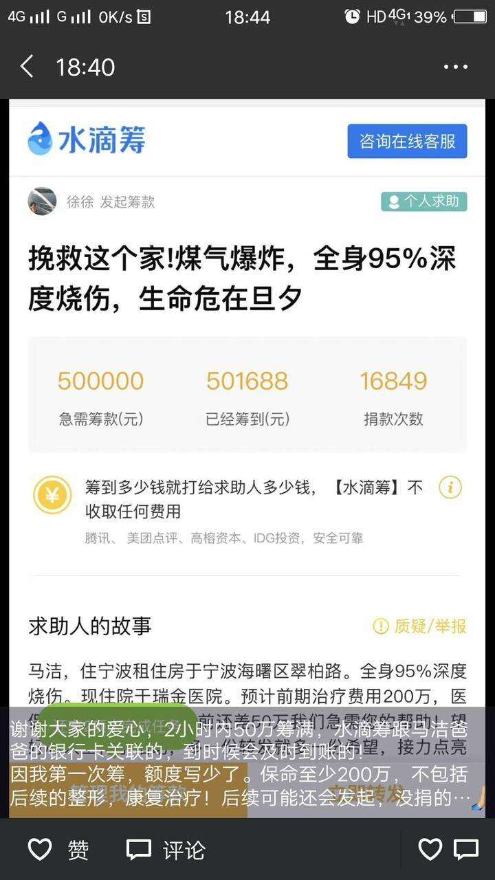 7、16小时筹款50万元帮助遭雷击重伤的一家三口