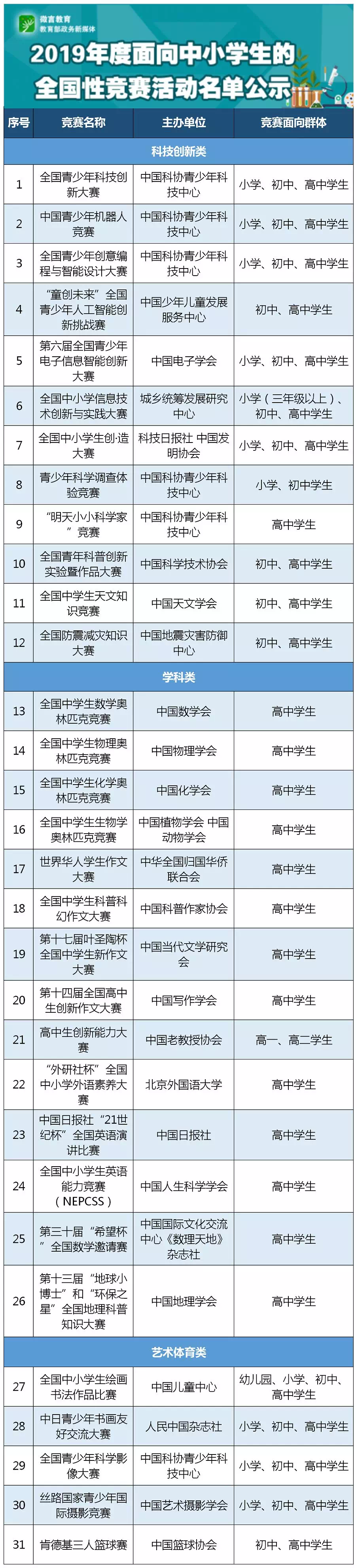 家长们可以松口气了?教育部首次公示31项全国性竞赛活动名单