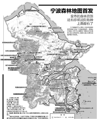 今天是植树节40周年,市自然资源和规划局首次发布“宁波森林地图”。根据这份地图,市民可以清楚地了解到全市的森林公园、自然保护区、湿地公园以及野生动植物等分布信息。