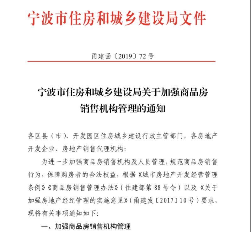 同时,要求房企业规范商品房销售人员的销售行为,在销售现场醒目位置张贴商品房销售服务承诺书,并公示销售代理机构的备案证书及全部销售人员信息,接受监督。而且每个商品房项目的销售机构和人员信息都将在宁波市房产交易信息服务网上公示。