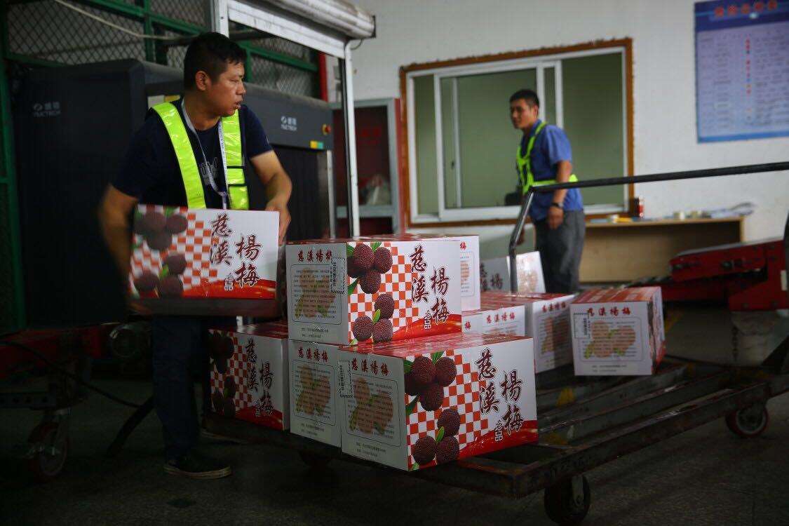 浙江在线-宁波频道6月19日讯(浙江在线记者 王凯艺 通讯员 黄跃光 李乐炯)又到一年杨梅季。“宁波是杨梅的盛产地,话说在宁波混得好不好,就看这两天有没有人给你送杨梅。”近日,一张关于宁波人送杨梅的漫画在朋友圈走红。的确,记者从宁波栎社国际机场了解到,最近有大批量的杨梅跟随宁波乘客飞往全国各地,以运往北京、哈尔滨、长春、沈阳等地居多。