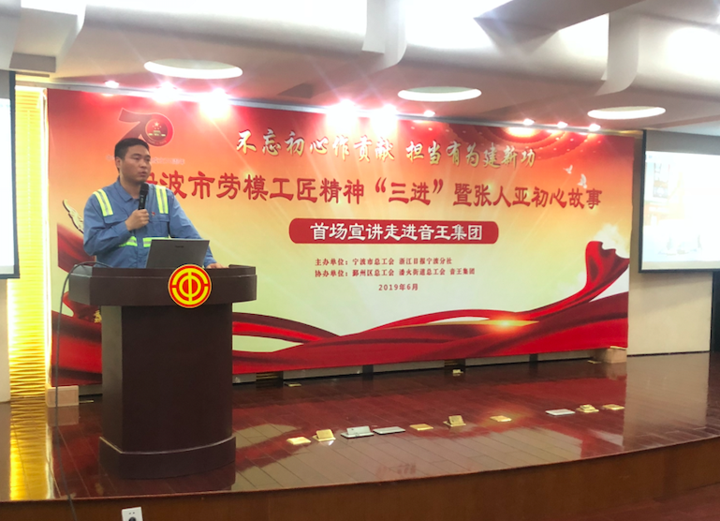 浙江在线-宁波频道6月27日讯(浙江在线记者 周文丹 王健)不忘初心做贡献,担当有为建新功。6月27日下午,“红分享·我的初心故事”——宁波劳模工匠精神“三进”暨张人亚初心故事首场宣讲活动,走进音王集团。