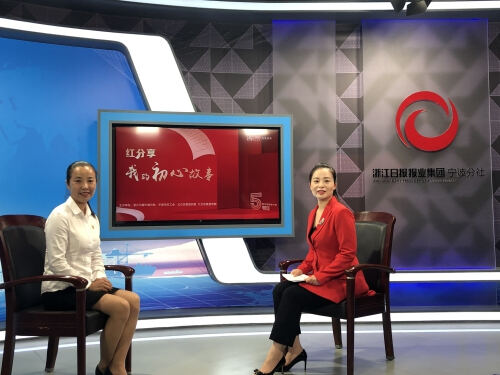 十九大代表陈霞娜(左)走进浙报宁波分社演播室,分享她的初心故事