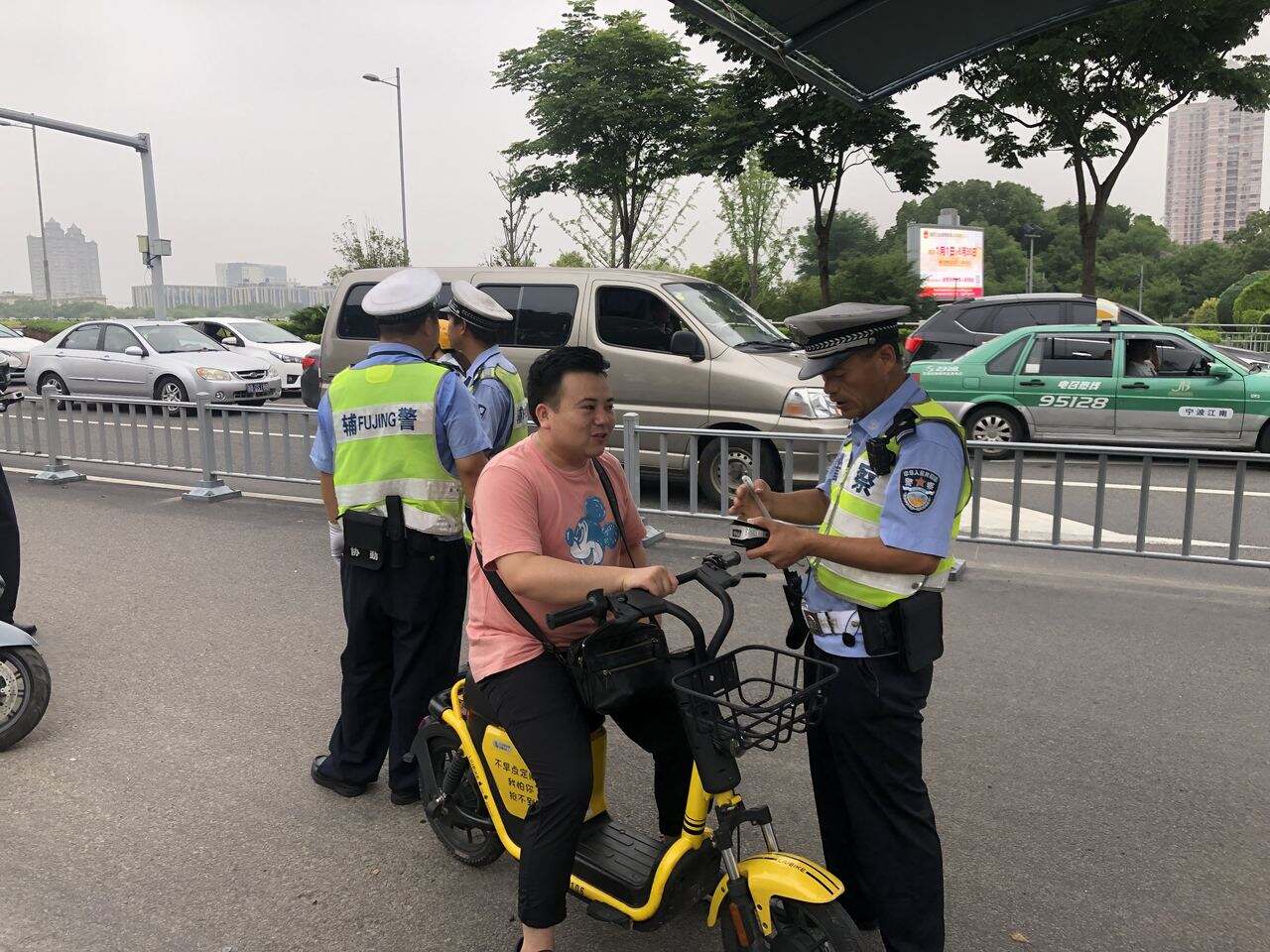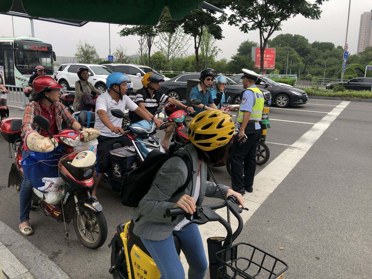 上午8:10,周女士骑着“小遛”共享电动自行车送孩子上培训班。经过江厦桥东时,被正在执勤的交警拦下。“为什么要拦我?”周女士不解。“这位女士,你骑电动自行车没有佩戴安全头盔,而且你也没有给你的孩子戴头盔。请你出示一下身份证。”周女士说因为孩子上课快迟到了,加上培训班离家也不算远,就打算用“小遛”共享电动自行车把孩子送过去,但是因为自己安全意识不高,忽略了戴头盔这件事。