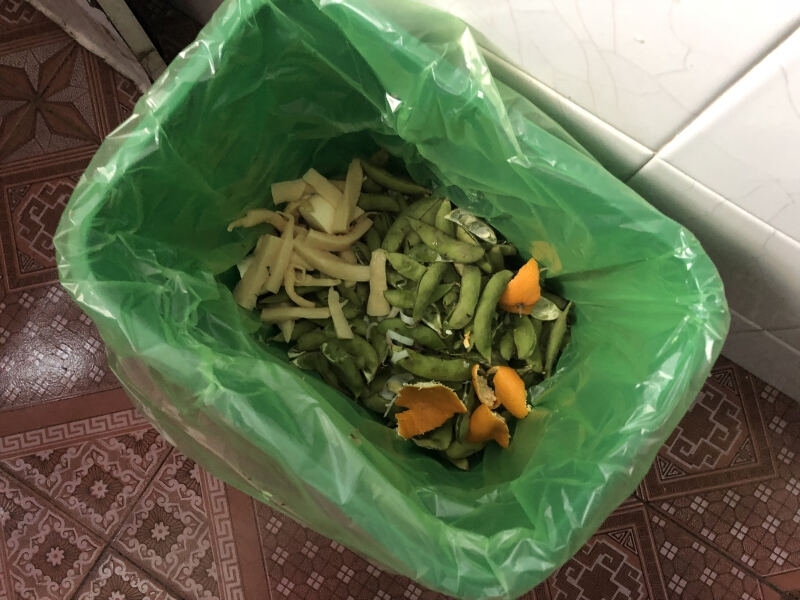 80多岁的杨月桂老人做的厨余垃圾分类。