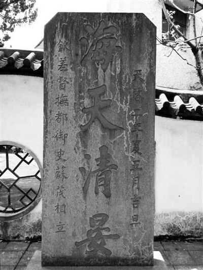 明钦差督抚都御史苏茂相在镇海立“海天清晏”碑。