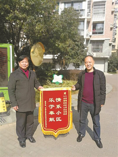 物业公司向社区志愿者赠送锦旗。(朱军备 摄)