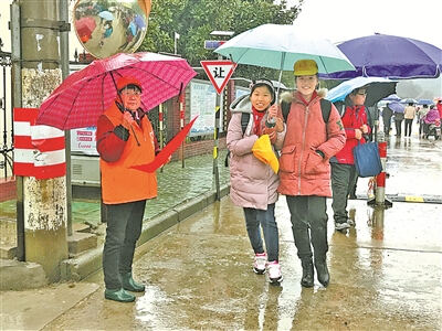 “小桔灯”护卫队悄悄消除着学校附近的各类安全隐患。“我们虽然年纪大了,但做志愿服务,我们是认真的!”徐亚芬笑着说。