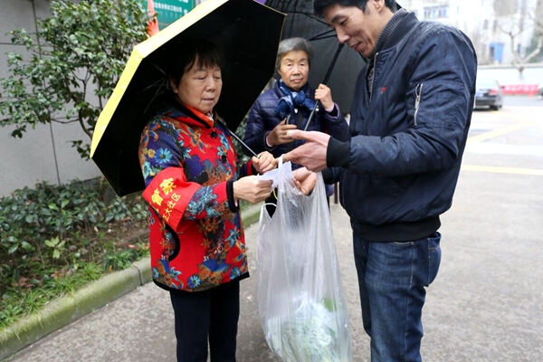 连续的降雨给居民的日常生活带来了不便,特别是高龄老人出门买菜、办事都有安全隐患。针对这一情况,宁波市江北区白沙街道正大社区党委联合江北区市场开发中心党支部,推出了为社区八十岁以上的独居空巢老人送菜上门的服务。