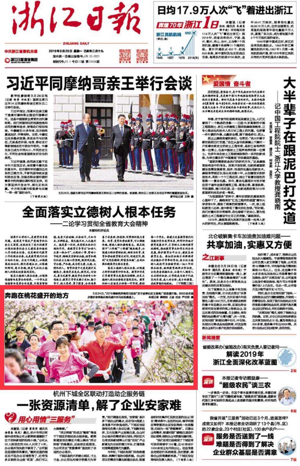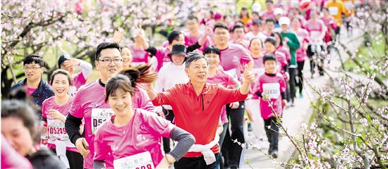 浙江在线-宁波频道3月25日讯(浙江在线记者 郭戟铠 王波 通讯员 严世君)3月24日,“2019海峡两岸桃花马拉松”在宁波奉化区文昌阁广场浪漫开跑。8000余名跑步爱好者奔跑在桃花盛开的马拉松赛道上。