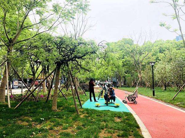 5月6日上午,华山路上的这个“口袋公园”,来了许多出门遛弯的市民。今年60多岁的王阿姨退休后,闲来无事,每天都会带着孙子到公园转转。她说:“原来晚上灯光不是很亮,植被又很茂密,像阴森森的‘百草园’,不敢进,散步只能沿马路转。现在不一样了,塑胶步道造好了,很清爽!”