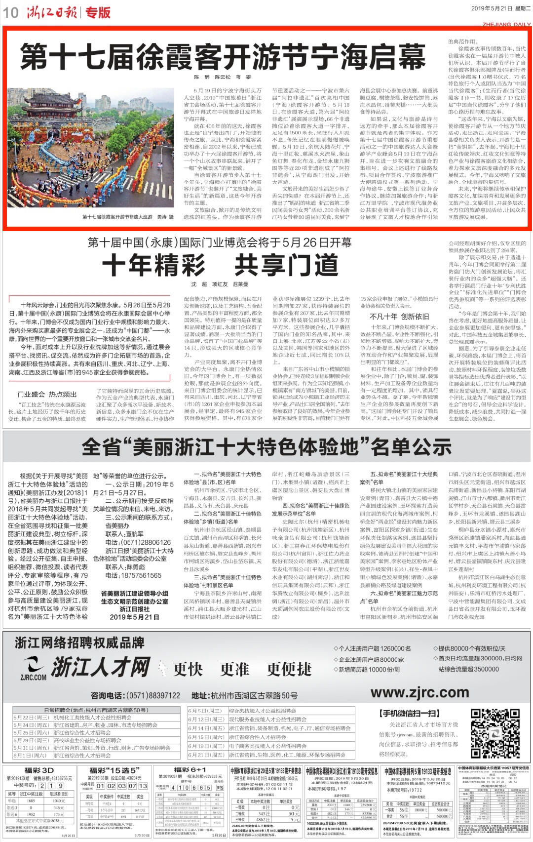 5月19日的宁波宁海街头万人空巷,2019“中国旅游日”浙江省主会场活动、第十七届徐霞客开游节开幕式在中国旅游日发祥地宁海开幕。
