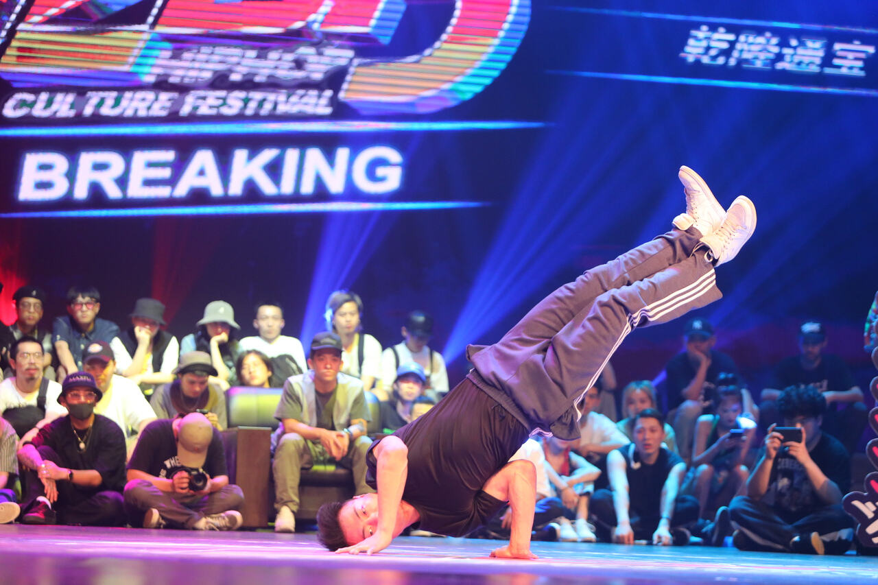 决赛现场,各路舞者摩拳擦掌,到处充斥着浓浓的火药味。在Breaking(地板舞)、 Hiphop(说唱)、Popping(机械舞)等项目的比拼上,选手们踩着音乐节拍,通过风车、头转、膝旋等一个个气势汹汹的街舞动作燃炸全场。