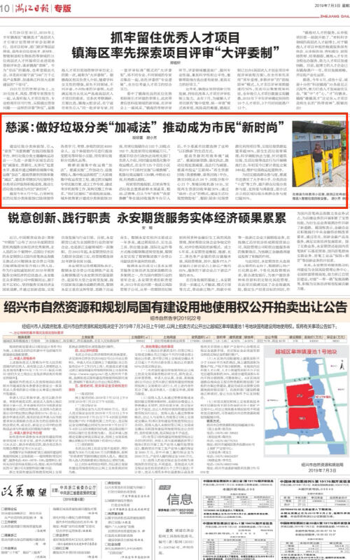 建设垃圾分类体验馆、引入“章鱼”“我要换糖”在线回收服务平台、举行垃圾分类主题趣味运动会……为进一步提升区域生活垃圾“减量化、资源化、无害化”处置水平,慈溪市通过精耕前端集中收运做“加法”,提高资源利用效率做“减法”,建成多项辖区内垃圾特色分类项目并取得积极成效,推动生活垃圾分类成为市民“新时尚”。