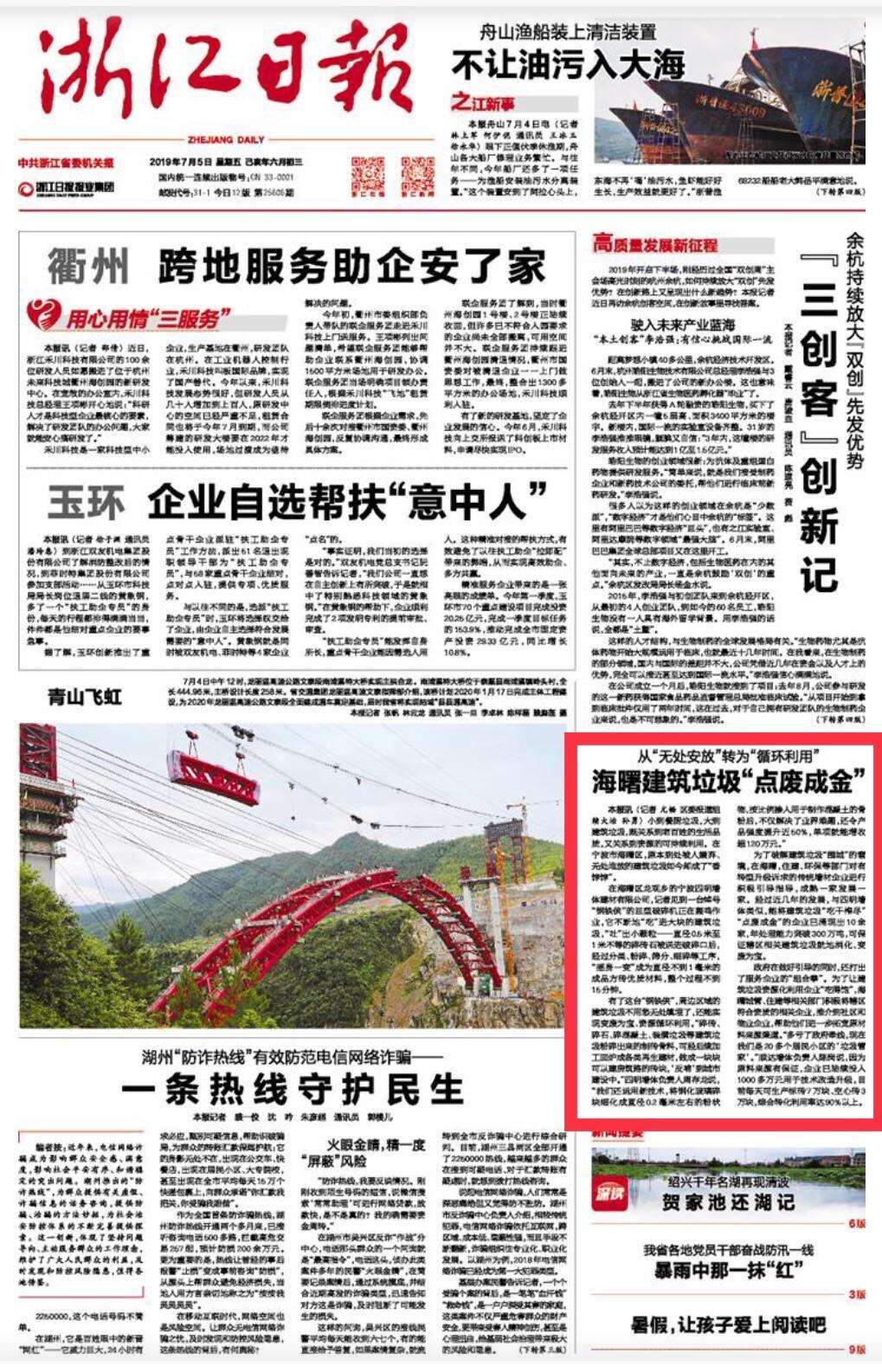 浙江在线-宁波频道7月5日讯(浙江在线记者 尤畅 区委报道组 续大治 孙勇)小到餐厨垃圾,大到建筑垃圾,既关系到老百姓的生活品质,又关系到资源的可持续利用。在宁波市海曙区,原本到处被人嫌弃、无处堆放的建筑垃圾如今却成了“香饽饽”。